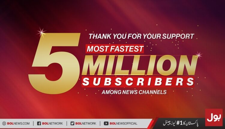 سوشل میڈیا پر بول نیوز کی فیملی میں دن بدن اضافہ ہوتا جارہا ہے اور حالیہ دنوں میں بول نیوز کی فالوونگ میں بہت تیزی سے اضافہ ہوا ہے یہی وجہ ہے کہ آج یوٹیوب پر بول نیوز کے سبسکرائبر کی تعداد 50 لاکھ سے زائد ہوگئی ہے۔