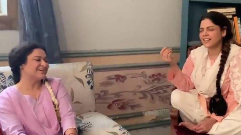 حال ہی میں حدیقہ کیانی نے سوشل میڈیا پر سیٹ کے مناظر کی ایک ویڈیو شیئر کی جس میں وہ اداکارہ ثانیہ سعید کے ساتھ گانا گارہی ہیں۔