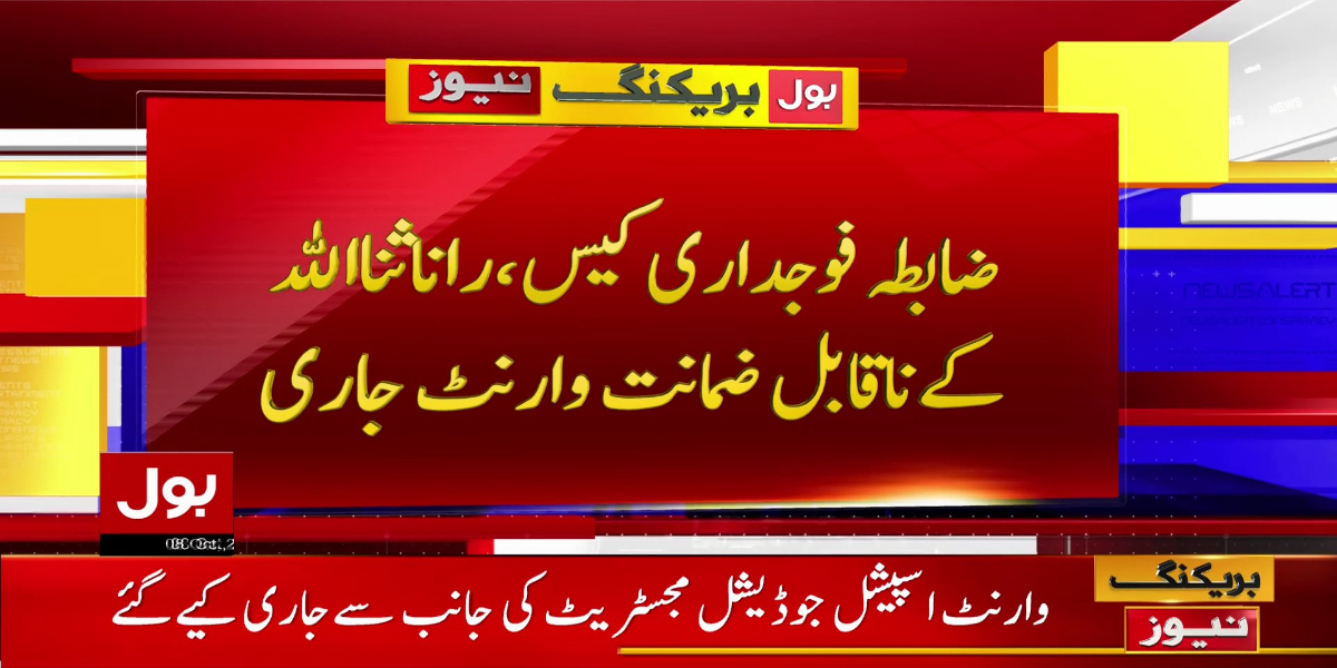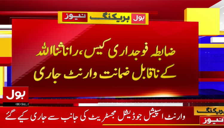 تفصیلات کے مطابق ضابطہ فوجداری کیس میں سپیشل جیوڈیشل مجسٹریٹ کیجانب سے رانا ثناءاللہ کی گرفتاری کیلئے ناقابلِ ضمانت وارنٹ گرفتاری جاری کئے گئے ہیں۔