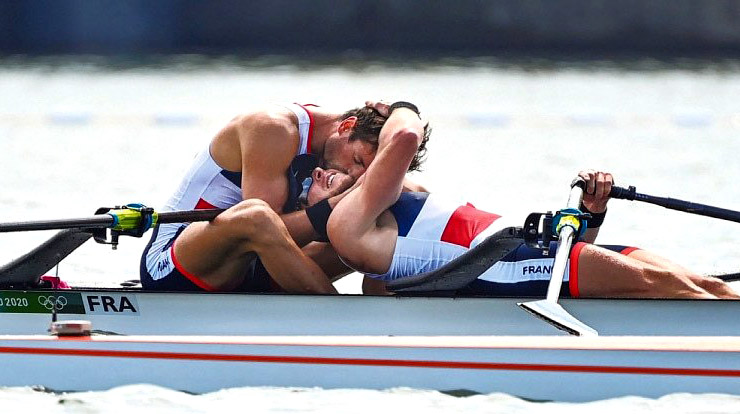 ٹوکیو گیمز کے پہلے دونوں روئنگ مقابلے سنسنی خیز رہے اور ویمنز ڈبل اسکلز میں رومانیا کی انکوٹا بوڈنر اور سِمونہ راڈس نے طلائی تمغہ جیتا جبکہ مردوں کے مقابلے میں فرانس کے ہوگو بوشرون اور میتھیو انڈروڈیاس فاتح قرار پائے، دونوں مقابلے اولمپکس کے ریکارڈ وقت کے ساتھ جیتے گئے۔ نیوزی لینڈ کی بروکس ڈنوہوے اور حَنا اوسبورن نے خواتین کے مقابلے میں چاندی کا تمغہ حاصل کیا جبکہ نیدرلینڈز کی روز ڈے جونگ اور لیزا شینارڈ کانسی کا تمغہ حاصل کر سکیں۔