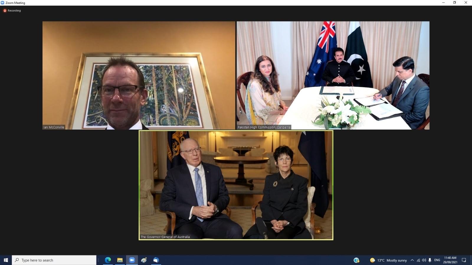 High Commissioner for Pakistan to the Commonwealth of Australia, H.E. Mr. Zahid Hafeez Chaudhri, presented his credentials to the Governor-General of the Commonwealth of Australia,